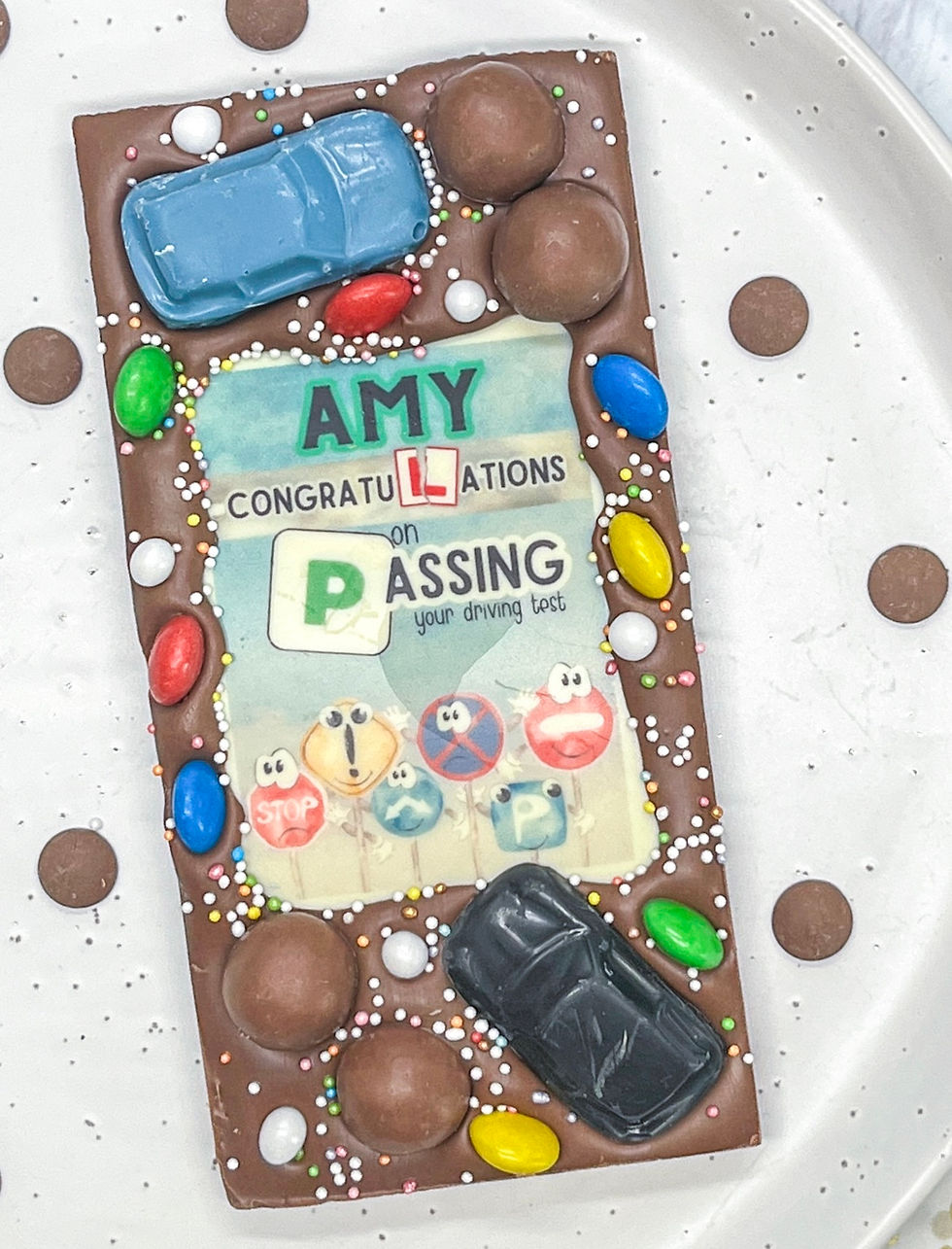 These chocolate slab designs have been created specifically with passing a driving license celebration in mind.