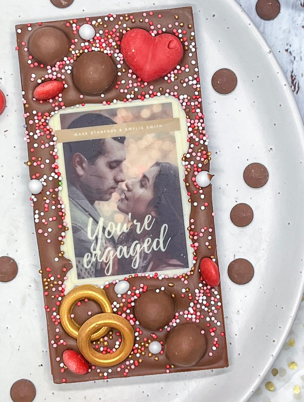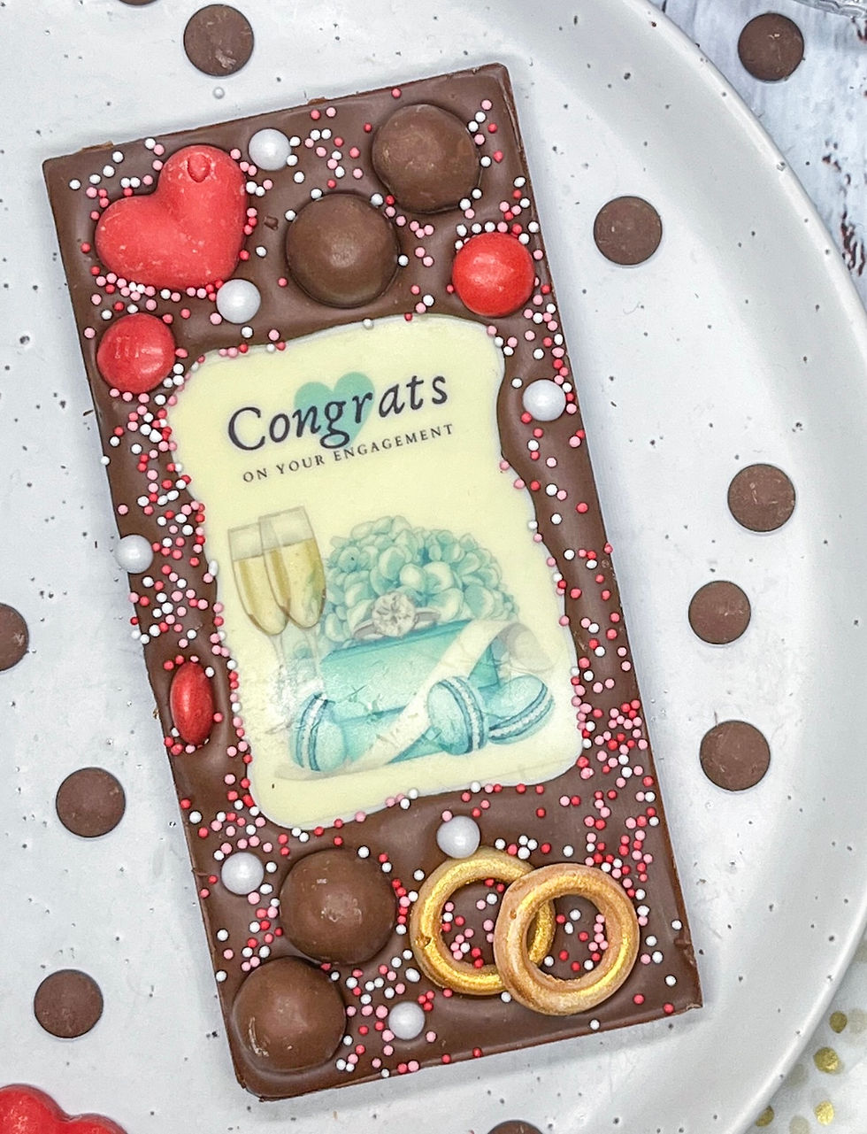 These chocolate slab designs have been created specifically with Engagement celebrations in mind.